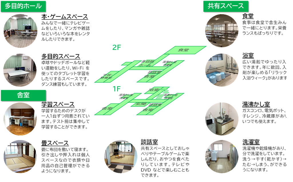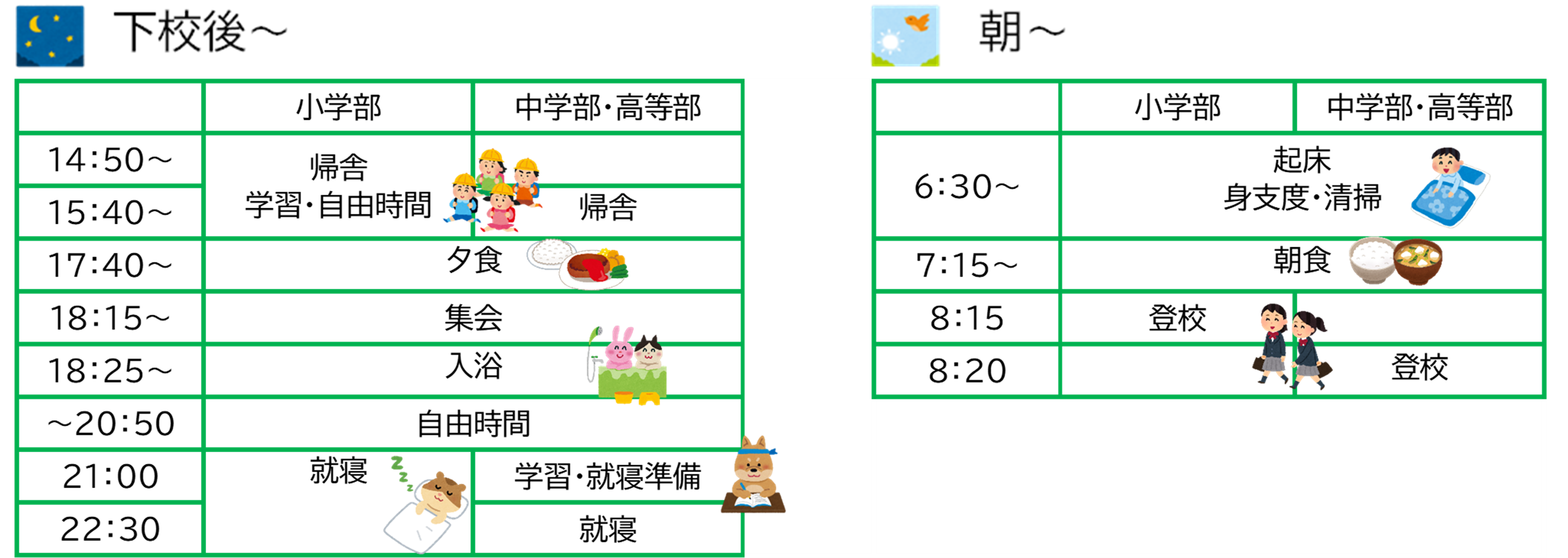 ・集団生活や異年齢の舎生途の関わりの中で、豊かなコミュニケーション力の育成に努 める。